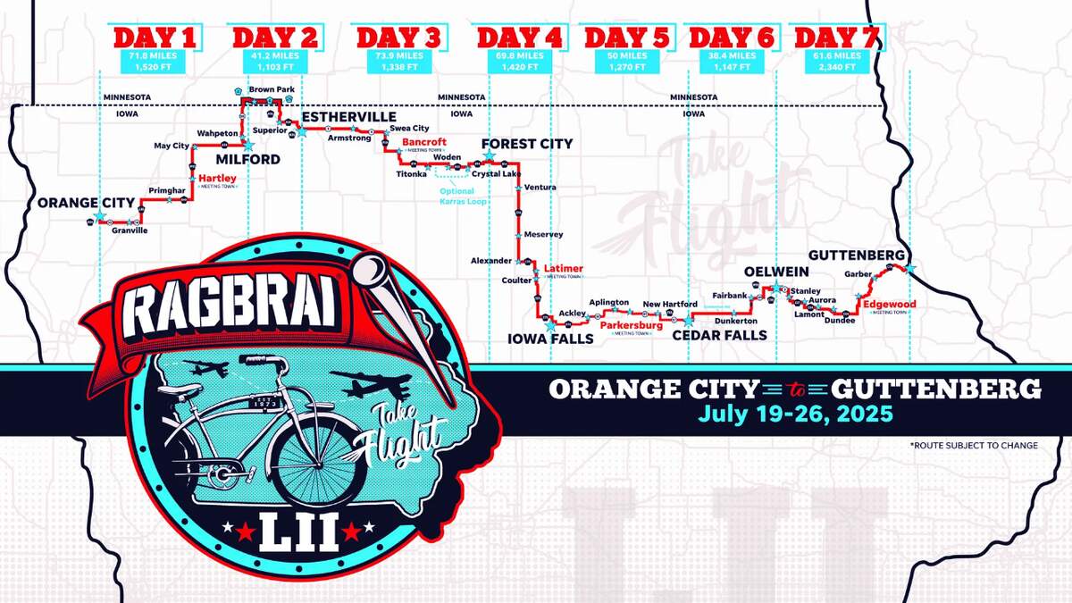 (Des Moines, IA) -- The 2025 RAGBRAI route will cross the Iowa-Minnesota state line for the first time ever.