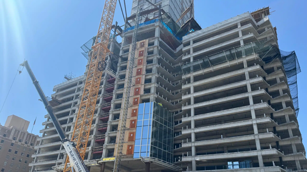 A development executive says the tower's concrete core has reached the 37th floor, with the steel structure reaching the 27th. The steel frame is expected to be complete by the end of this year, while work on the glass exterior and interior systems continues.