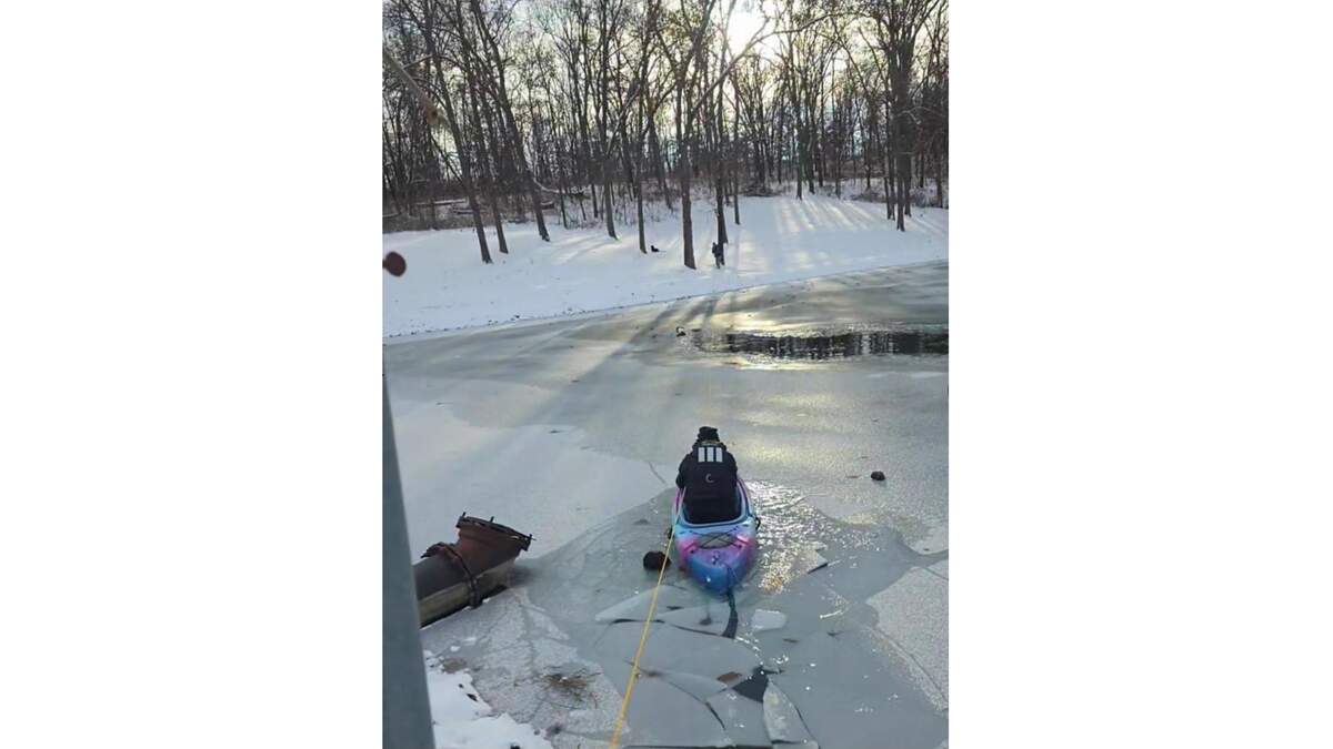 (Wapello County, IA) -- A Fire Chief in Wapello County rescued a dog after it fell into a partially frozen lake.