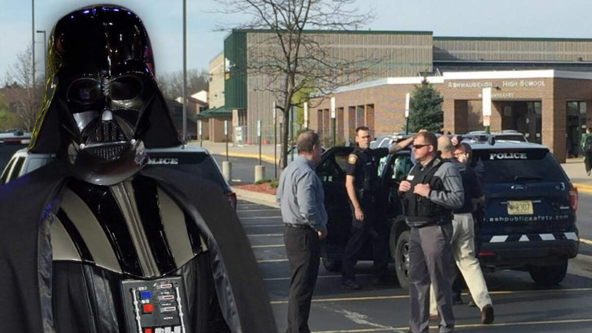 One Wisconsin kid decided to go to school wearing his Darth Vader costume.