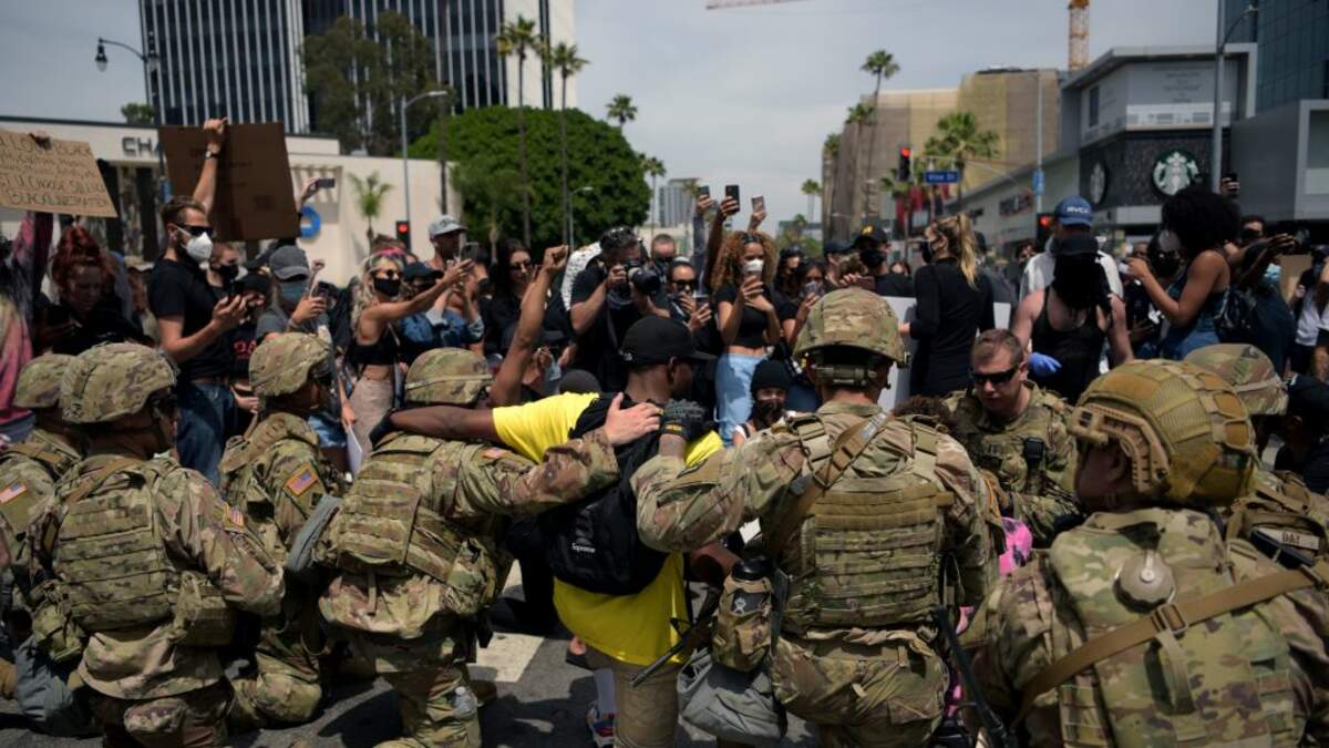 But now a new element has been added. National Guard troops are taking to their knees as well.